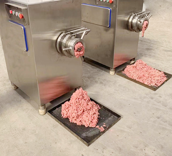 用于午餐肉罐頭生產(chǎn)時(shí),肥肉需要粗絞而瘦肉需要細(xì)絞,以調(diào)換格板的方式來達(dá)到粗絞與細(xì)絞之需。格板有幾種不同規(guī)格的孔眼,通常粗絞用之直徑為8-10毫米、細(xì)絞用直徑3-5毫米的孔眼。粗絞與細(xì)絞的格板,其厚度都為10-12毫米普通鋼板。由于粗絞孔徑較大,排料較易,故螺旋供料器的轉(zhuǎn)速可比細(xì)絞時(shí)快些因?yàn)楦癜迳系目籽劭偯娣e一定,即排料量一定,當(dāng)供料螺旋轉(zhuǎn)速太快時(shí),使物料在切刀附近堵塞,造成負(fù)荷突然增加,對電動(dòng)機(jī)有不良的影響。
